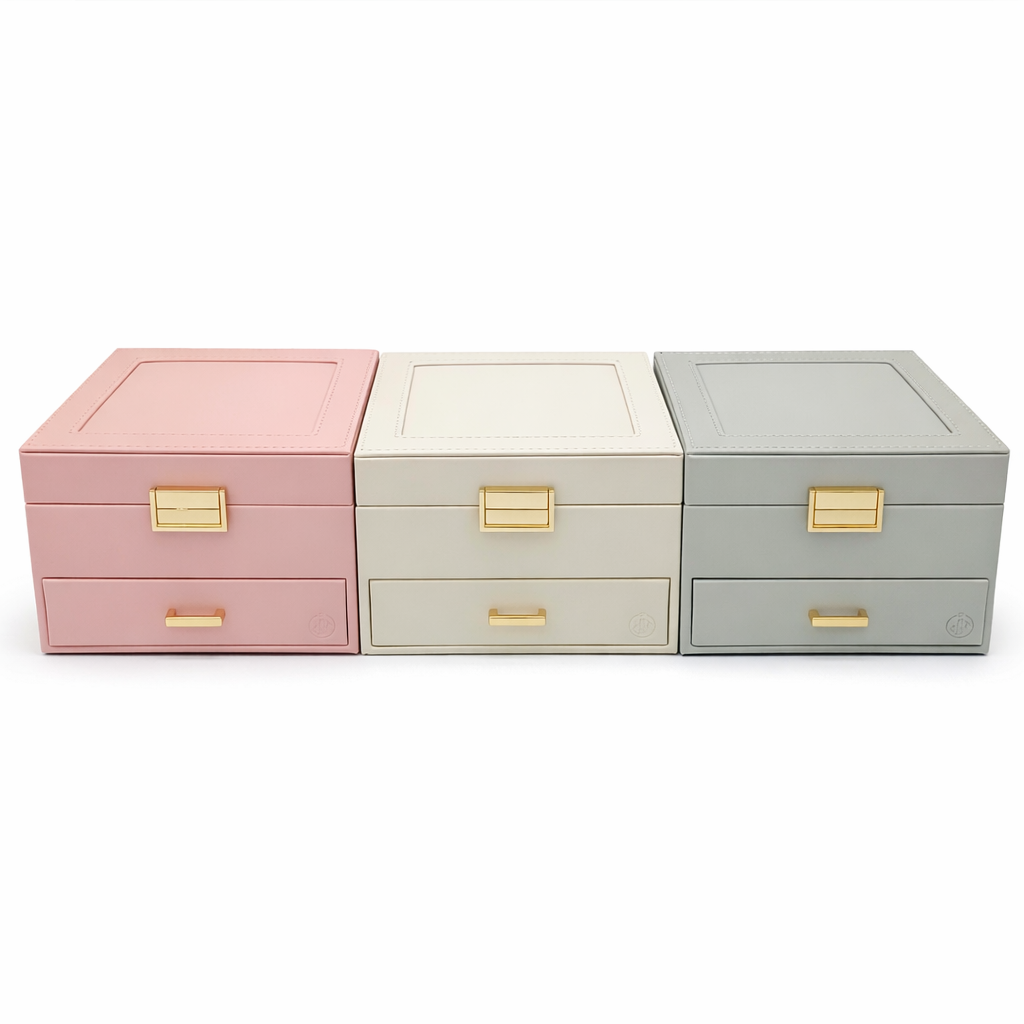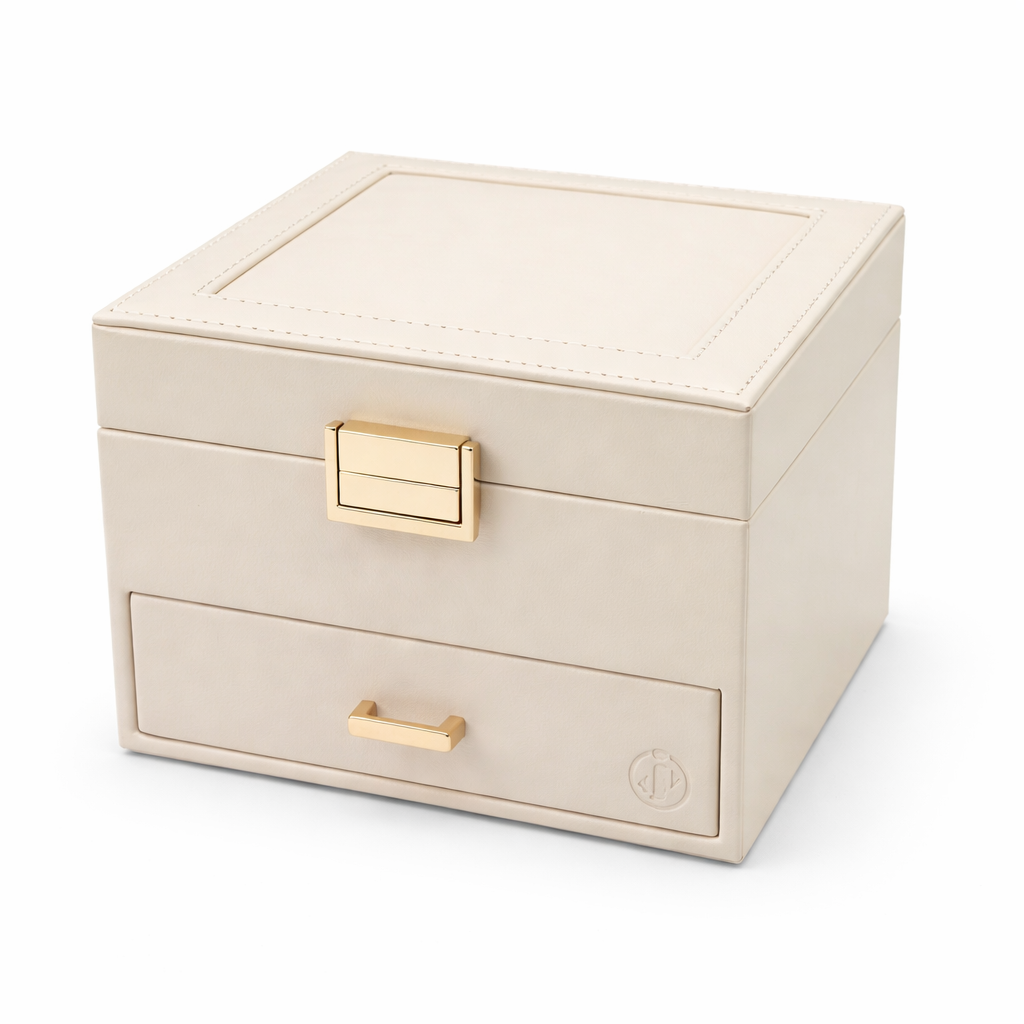 اگر بهدنبال یک جعبه جواهرات شیک، جادار و کاربردی برای نگهداری منظم زیورآلات ارزشمند خود هستید، این جعبه جواهرات زنانه دوطبقه کشودار انتخابی ایدهآل و لوکس محسوب میشود. طراحی مدرن با خطوط ساده، رنگهای ملایم و یراقآلات طلاییرنگ جلوهای بسیار شیک و دکوراتیو به این محصول بخشیده است.این جعبه دارای درب آینهدار داخلی است که استفاده روزمره از زیورآلات را آسانتر میکند. طبقه بالایی شامل تقسیمبندی منظم برای انگشتر، گوشواره و زیورآلات ریز بوده و کشوی پایینی جادار برای نگهداری دستبند، ساعت و گردنبندهای بزرگتر طراحی شده است.این محصول علاوه بر کاربرد خانگی، گزینهای بسیار مناسب برای هدیهای شیک و ماندگار برای بانوان است.