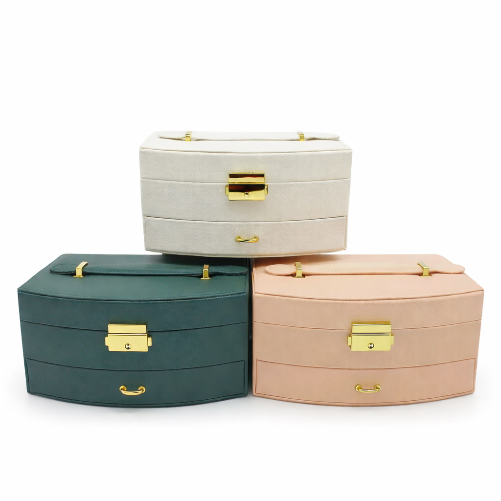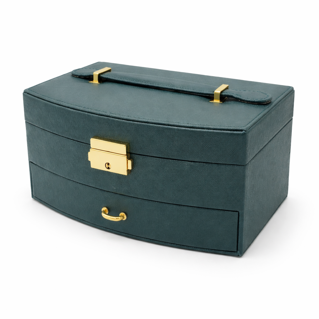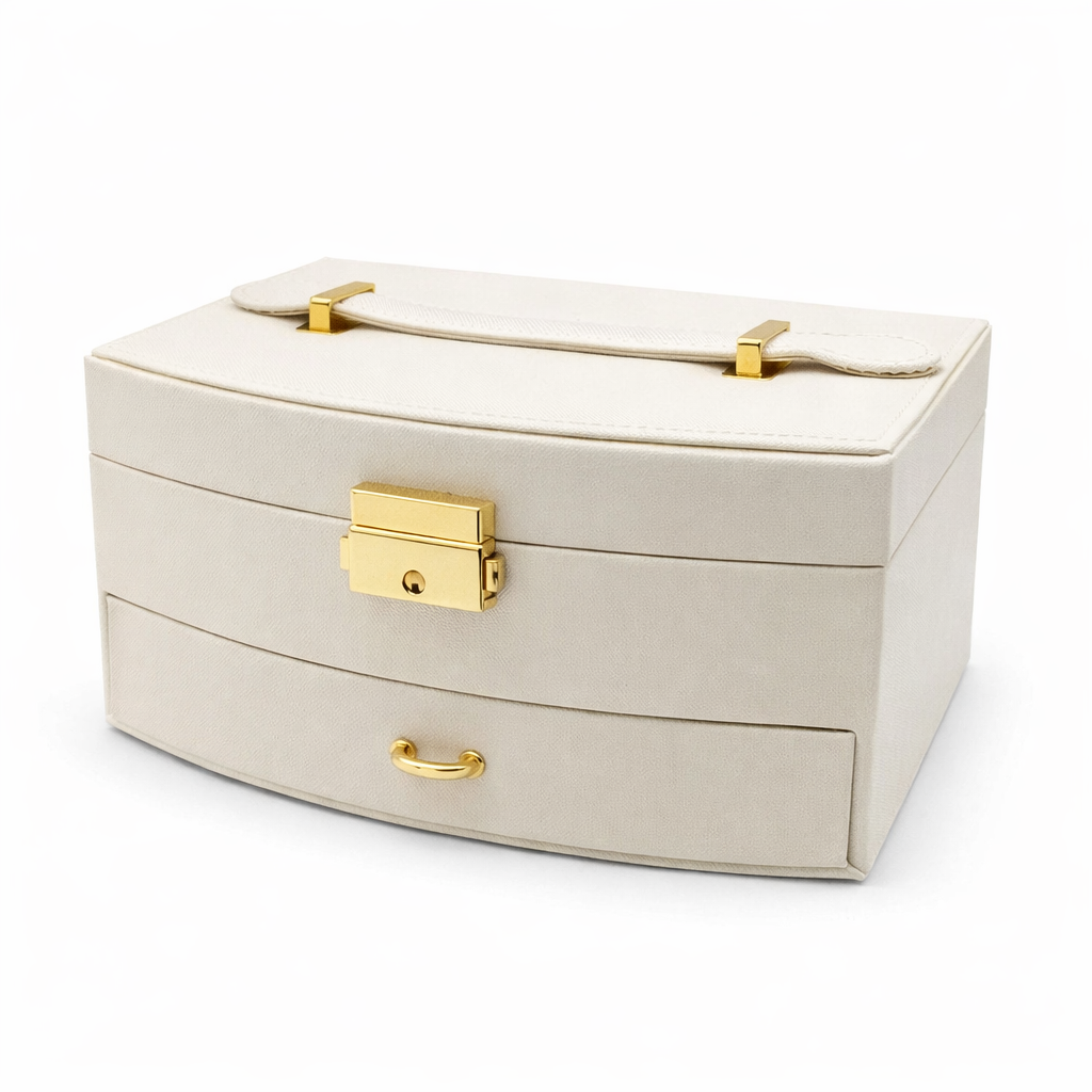 این جعبه جواهرات شیک دو طبقه و دارای ظرفیت نگهداری 11 عدد انگشتر بوده و با برخورداری از 4 قلاب مخصوص گردنبند به همراه جیب پارچهای ضد گره، نظم کاملی برای زیورآلات شما فراهم میکند. وجود 6 محفظه مجزا برای گوشواره و زیورآلات ریز و یک محفظه بزرگ در وسط و کشوی پایینی چهار بخشی مخصوص نگهداری ساعت و دستبند، فضای کاربردی و جاداری را ایجاد کرده است. آستر داخلی مخملی نرم و ضدخش از زیورآلات در برابر آسیب محافظت میکند و قفل فشاری فلزی با آبکاری طلایی امنیت و جلوهای لوکس به محصول میبخشد. همچنین این جعبه با دسته حمل مقاوم و طراحی شیک، گزینهای ایدهآل برای استفاده روزمره و هدیهای خاص و ارزشمند محسوب میشود.