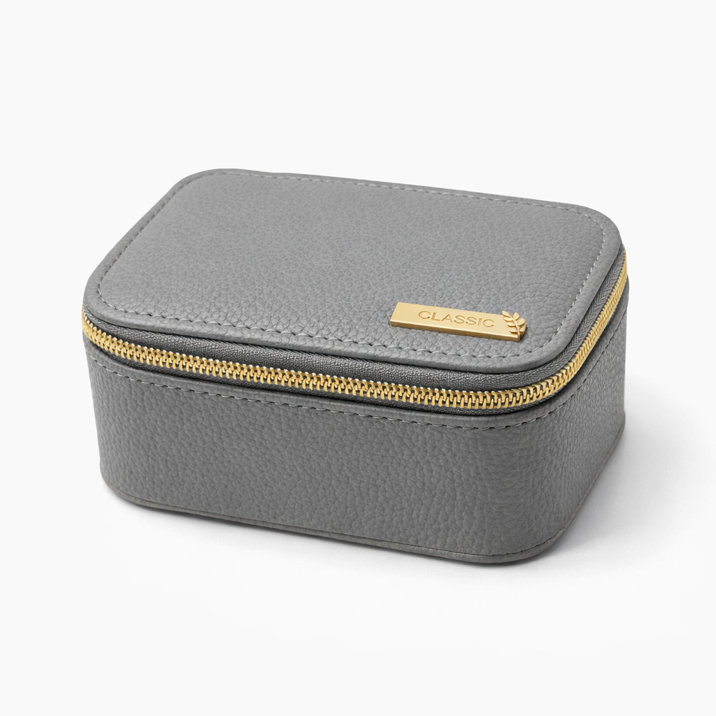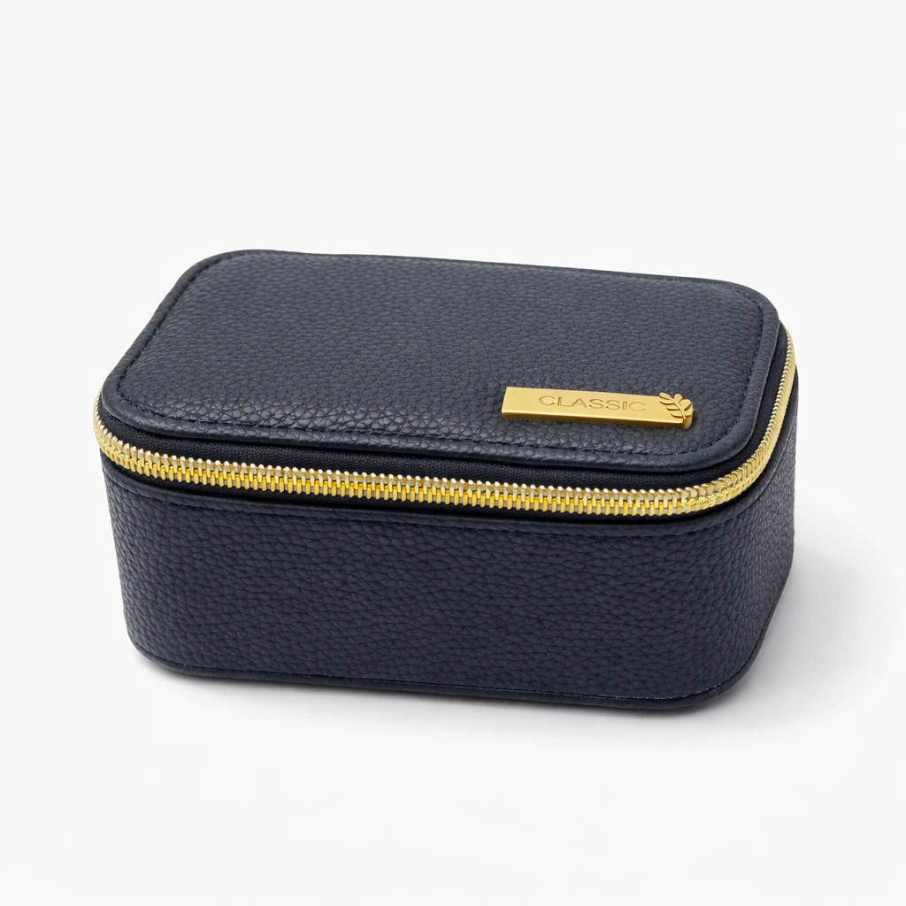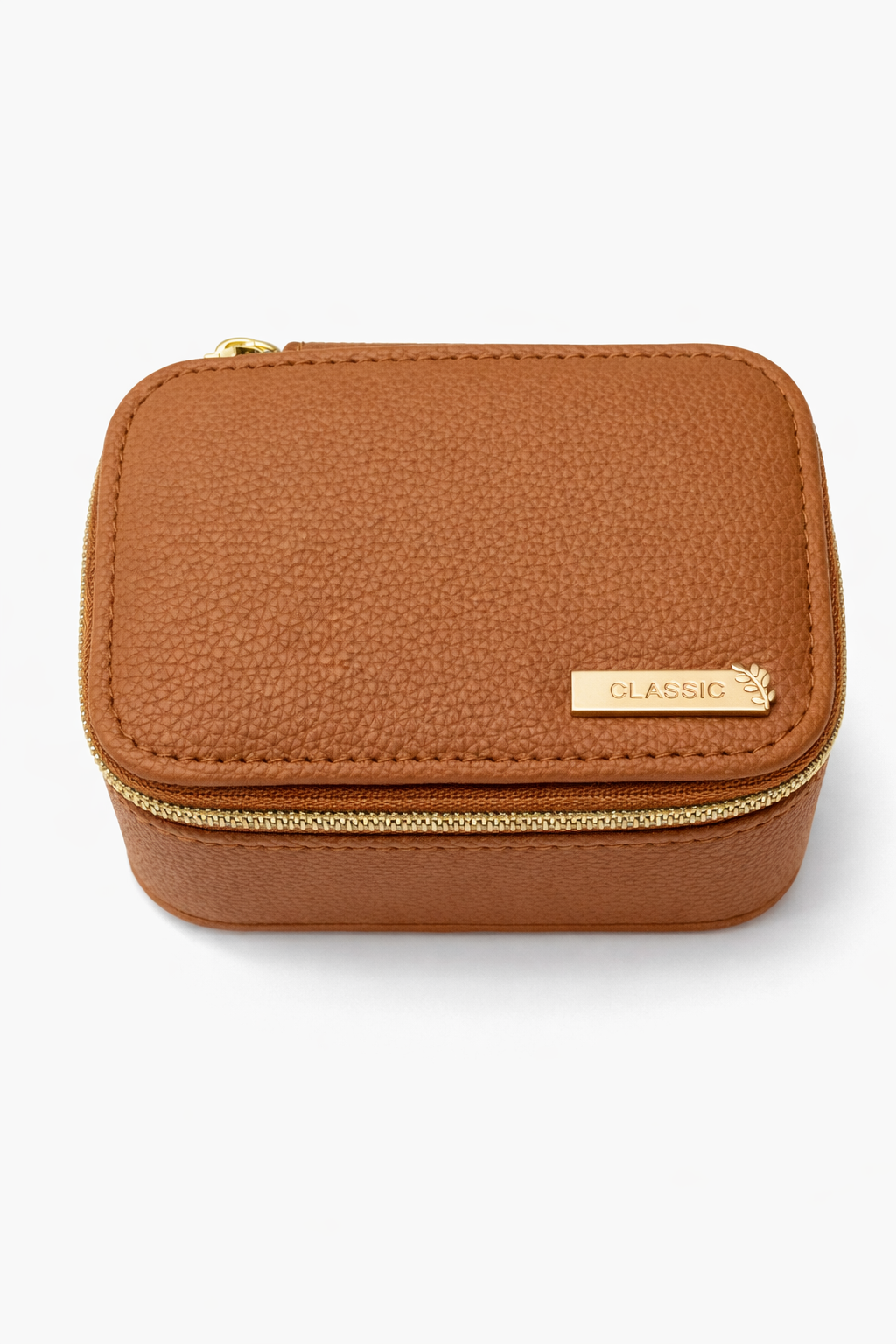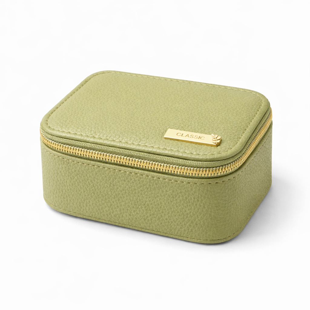 توضیح مختصر: جعبه جواهرات چرمی زیپدار مدل کلاسیک با طراحی شیک و ابعاد جمعوجورو کیفیت بالا، انتخابی کاربردی برای نگهداری ایمن و منظم انواع زیورآلات است.