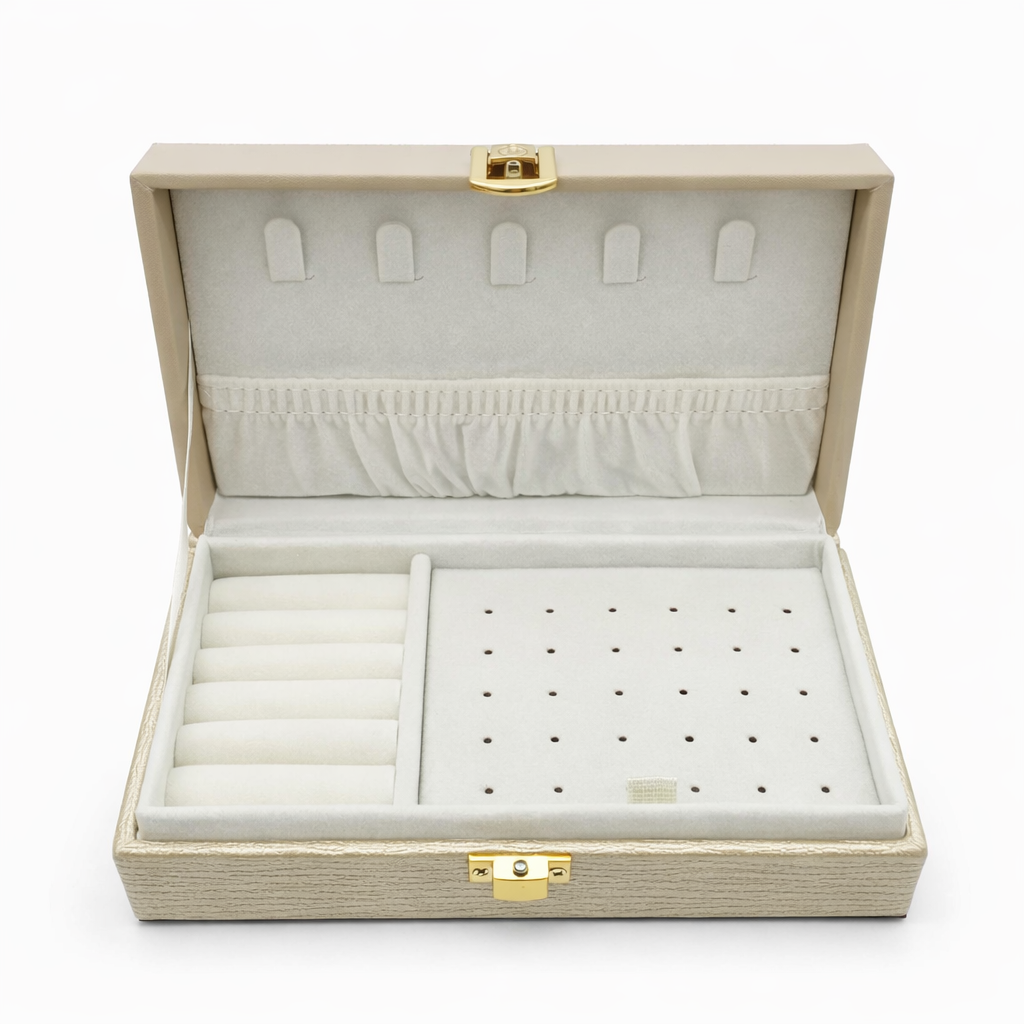 توضیح مختصر: اگر به دنبال راهی شیک و مطمئن برای نگهداری زیورآلات ارزشمند خود هستید، این جعبه جواهرات چرمی چندمنظوره انتخابی هوشمندانه برای شماست.