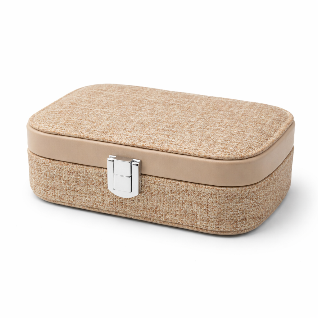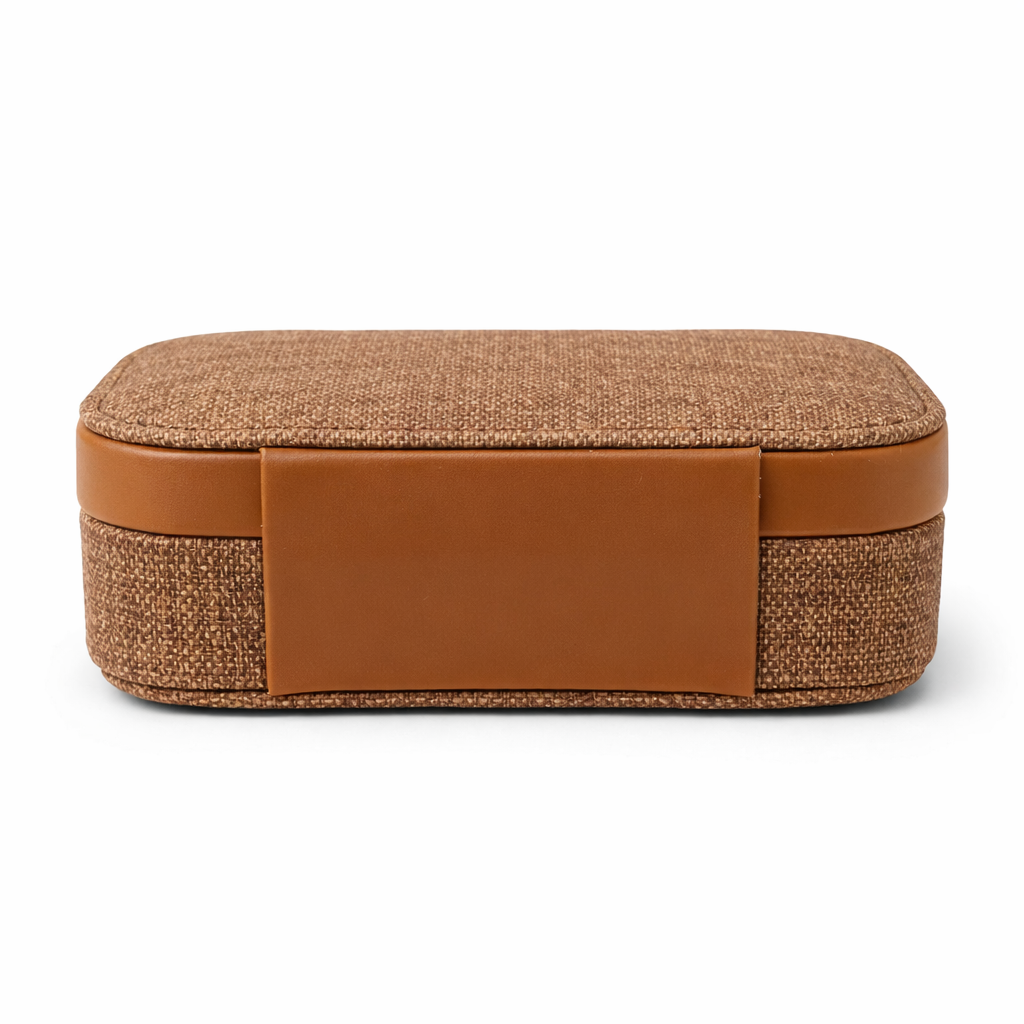 توضیح مختصر: جعبه جواهرات چرمی لوکس مدل M020 گزینهای جمعوجور و کاربردی برای نگهداری روزمره زیورآلات است.